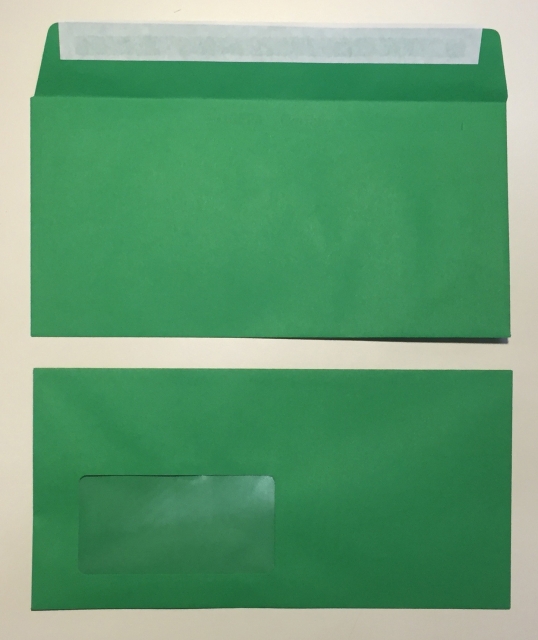 Günstige, farbige Umschläge im Format DIN lang = 220 x 110 mm in Rot, Dunkelrot, Hellblau, Azur, Hellgrün, Grasgrün, Hellgelb, Schwefelgelb, Chamois, Perlweiß und Silbergrau